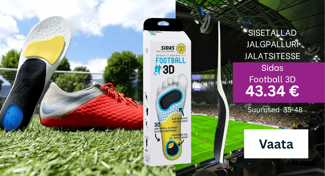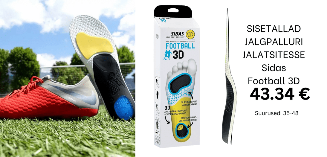 SISETALLAD POOTSADESSE / JALGPALLURI JALATSITESSE Sidas Football 3D; Jalgade vale asend; Jalad väsivad kiiresti; 1 paar
